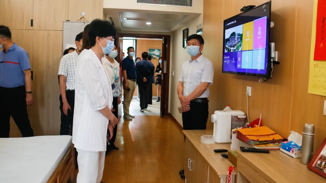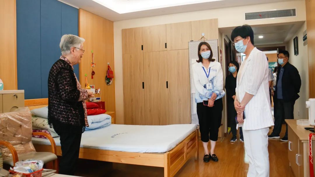 調(diào)研組一行實(shí)地參觀了康久醫(yī)院各科室、住院部,普陀天頤老人健康自理區(qū)、小單元多功能集中養(yǎng)護(hù)區(qū)、智能助浴室、棋牌室、書畫室、禮佛室等功能區(qū)域,詳細(xì)了解各項(xiàng)服務(wù)。