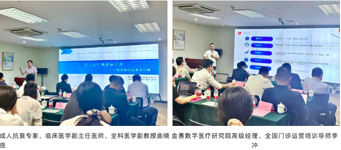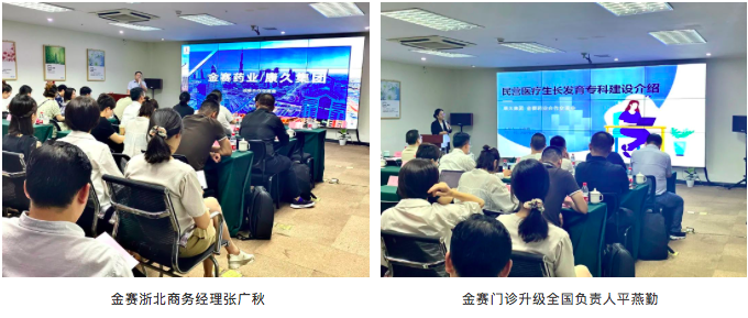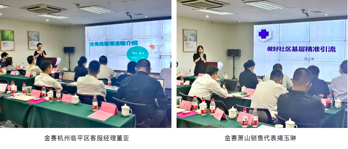 會(huì)上,康久集團(tuán)和金賽藥業(yè)就雙方品牌發(fā)展歷程、優(yōu)秀的實(shí)踐經(jīng)驗(yàn)、未來(lái)戰(zhàn)略合作和發(fā)展方向等進(jìn)行分享和探討。金賽浙北商務(wù)經(jīng)理張廣秋就雙方深入合作與未來(lái)發(fā)展方向進(jìn)行分享;金賽數(shù)字醫(yī)療研究院高級(jí)經(jīng)理、全國(guó)門診運(yùn)營(yíng)培訓(xùn)導(dǎo)師李沖就民營(yíng)醫(yī)院精細(xì)化管理與??平?jīng)營(yíng)進(jìn)行分享;門診升級(jí)全國(guó)負(fù)責(zé)人平燕勤就民營(yíng)醫(yī)療生長(zhǎng)發(fā)育??平ㄔO(shè)進(jìn)行分享;成人抗衰專家、臨床醫(yī)學(xué)副主任醫(yī)師、全科醫(yī)學(xué)副教授曲曉良就成人抗衰之路進(jìn)行分享;杭州臨平區(qū)客服經(jīng)理董亞就全身高管理流程進(jìn)行分享;杭州蕭山區(qū)銷售代表揭玉琳則就如何做好社區(qū)基層精準(zhǔn)引流進(jìn)行分享。