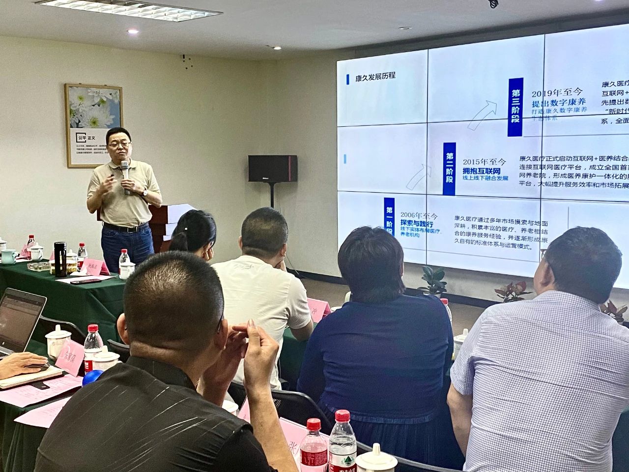 康久集團(tuán)董事長(zhǎng)耿海波對(duì)金賽團(tuán)隊(duì)的分享表示感謝,金賽團(tuán)隊(duì)的經(jīng)驗(yàn)非常值得康久學(xué)習(xí)借鑒。耿總向金賽團(tuán)隊(duì)介紹了康久的品牌發(fā)展歷程和公司發(fā)展戰(zhàn)略,并就數(shù)字康養(yǎng)云、??七\(yùn)營(yíng)業(yè)務(wù)等內(nèi)容進(jìn)行詳細(xì)介紹。耿總表示,基于國(guó)內(nèi)經(jīng)濟(jì)發(fā)展形勢(shì)、行業(yè)最新政策與發(fā)展趨勢(shì),例如人口老齡化日益嚴(yán)重、“一老一小”政策、三胎政策的出臺(tái),數(shù)字康養(yǎng)將成為康養(yǎng)產(chǎn)業(yè)“新基建”,康久應(yīng)與時(shí)俱進(jìn),主動(dòng)出擊。在社區(qū)引流方面,康久也有著堅(jiān)實(shí)的發(fā)展基礎(chǔ),在如何變被動(dòng)為主動(dòng),開(kāi)拓全新合作模式等方面非常值得雙方探究。