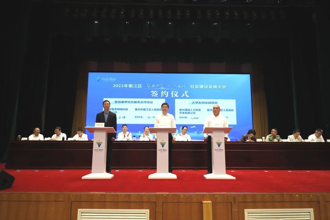 5月7日,2022年衢州市衢江區(qū)“聚力共富、賦能五城”社會(huì)建設(shè)發(fā)展大會(huì)在衢江區(qū)政府大會(huì)議室隆重召開。會(huì)上,杭州康久醫(yī)療投資管理有限公司全資子公司杭州醫(yī)養(yǎng)網(wǎng)絡(luò)科技有限公司,與衢江區(qū)人民政府簽署了智慧康養(yǎng)服務(wù)合作協(xié)議,康久集團(tuán)高級(jí)副總裁、醫(yī)養(yǎng)科技董事長章輝,衢州市衢江區(qū)人民政府副區(qū)長徐東升分別代表雙方簽字。