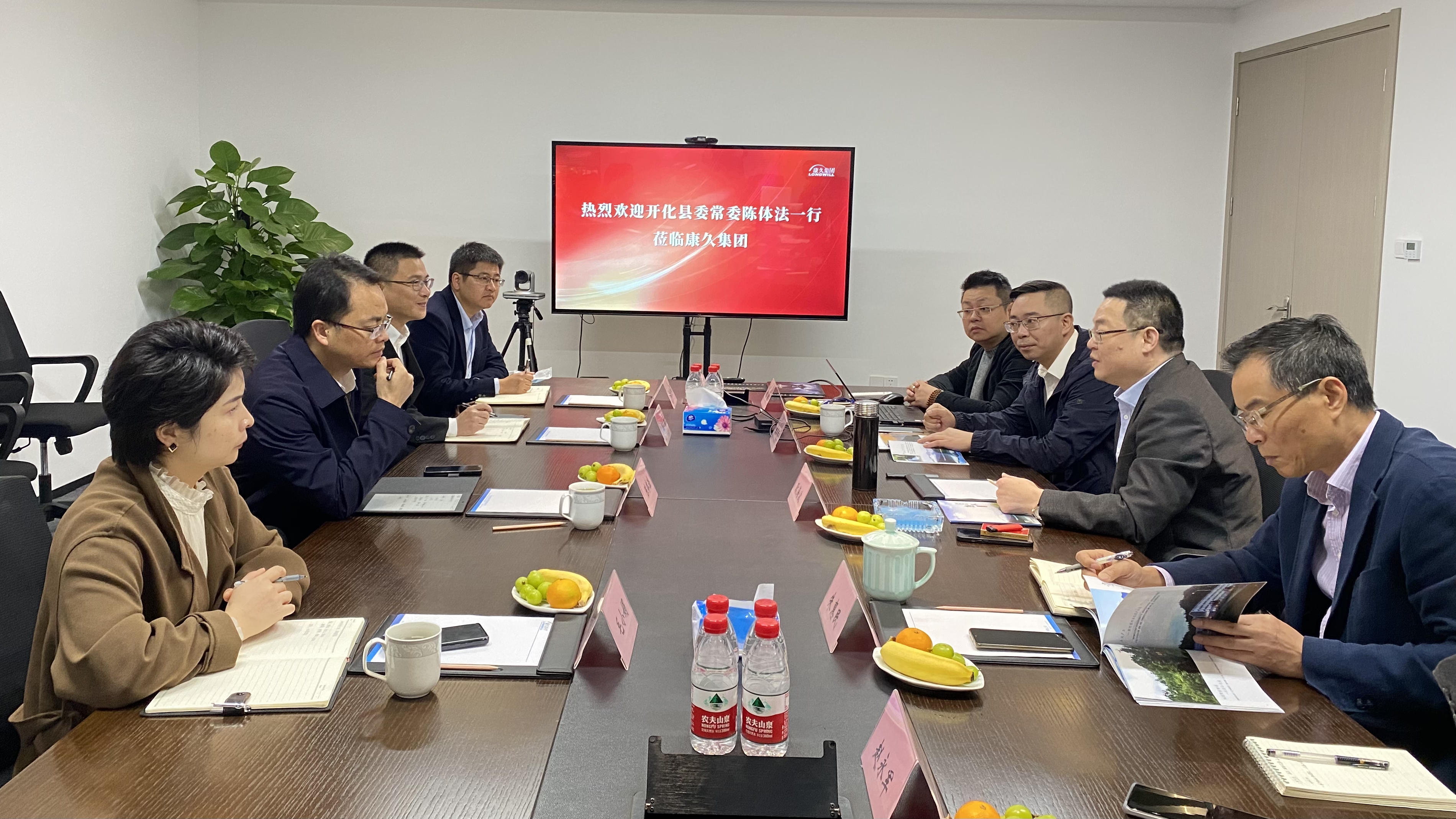 11月23日,開化縣委常委、副縣長陳體法,兩山集團董事長徐浩,副總經(jīng)理毛小娟,副總經(jīng)理徐建峰蒞臨康久集團考察調(diào)研??稻眉瘓F董事長耿海波、副總裁朱惠民、康久學社總經(jīng)理陸其文等陪同考察。