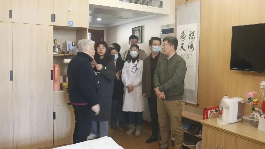 調(diào)研組一行實(shí)地參觀了康久醫(yī)院各科室、住院部,普陀天頤老人健康自理區(qū)、小單元多功能集中養(yǎng)護(hù)區(qū)、智能助浴室、棋牌室、書畫室、禮佛室等功能區(qū)域。