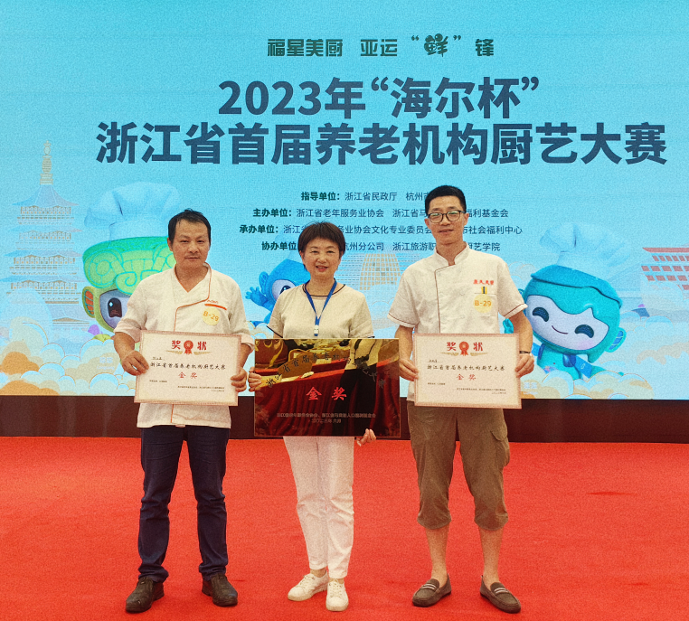 6月30日,2023年“海爾杯”浙江省首屆養(yǎng)老機構廚藝大賽在浙江旅游職業(yè)學院南校區(qū)火熱開賽,大賽以“福星美廚 亞運‘鮮’鋒”為主題,來自浙江省各地的50家養(yǎng)老機構、上百位選手齊聚杭州、同臺競技,開展了一場別開生面的“廚王爭霸賽”。大賽共產生團體金獎8名、銀獎12名、銅獎18名、優(yōu)勝獎若干名,參加特色菜制作表演賽環(huán)節(jié)的10家養(yǎng)老機構還分獲最具特色獎、最佳創(chuàng)意獎和最具人氣獎??稻眉瘓F旗下杭州康久天頤養(yǎng)老院以優(yōu)異的表現(xiàn)榮獲浙江省首屆養(yǎng)老機構廚藝大賽團體金獎。