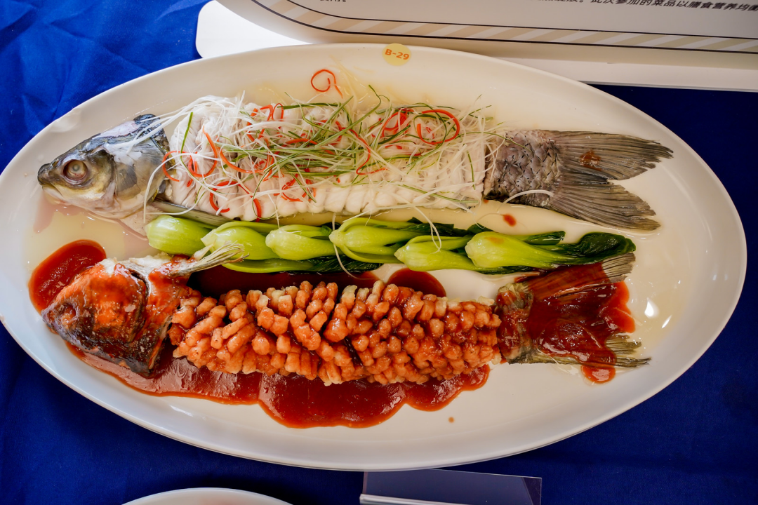 在杭州康久天頤養(yǎng)老院的展臺上,一道名為“一魚二吃”的菜品色澤飽滿,鮮嫩欲滴,吸引了不少嘉賓駐足欣賞?!斑@道菜由草魚為主料,再配上鮮嫩的菜心作為點綴,口感豐富,肉質鮮嫩細膩?!笨稻锰祛U養(yǎng)老院的張大廚介紹道。