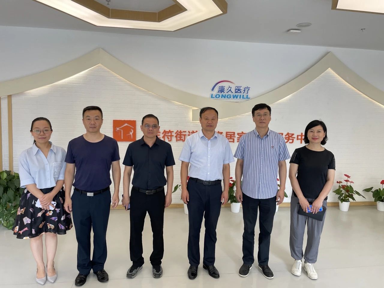 7月27日,淮南市民政局局長鄭田宏、招商辦主任王繼軍、養(yǎng)老科科長梅松寶、安徽永愛養(yǎng)老服務(wù)有限公司負(fù)責(zé)人朱傳華等一行領(lǐng)導(dǎo)蒞臨康久集團(tuán)考察調(diào)研??稻眉瘓F(tuán)董事長耿海波、高級副總裁章輝、高級副總裁史健等陪同考察。