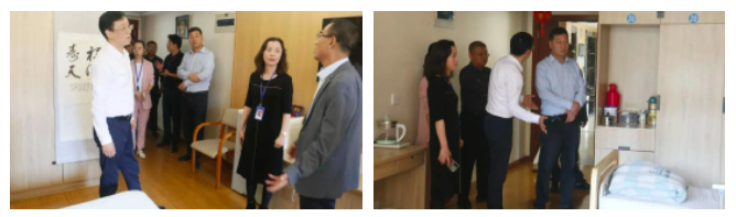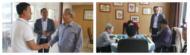 考察組進(jìn)入生活自理區(qū)、介助區(qū)、介護(hù)區(qū)、小單元多功能集中養(yǎng)護(hù)區(qū)等區(qū)域查看了解入住老人飲食起居、照料看護(hù)、日常文娛活動(dòng)等情況,并親切地與老人交談。