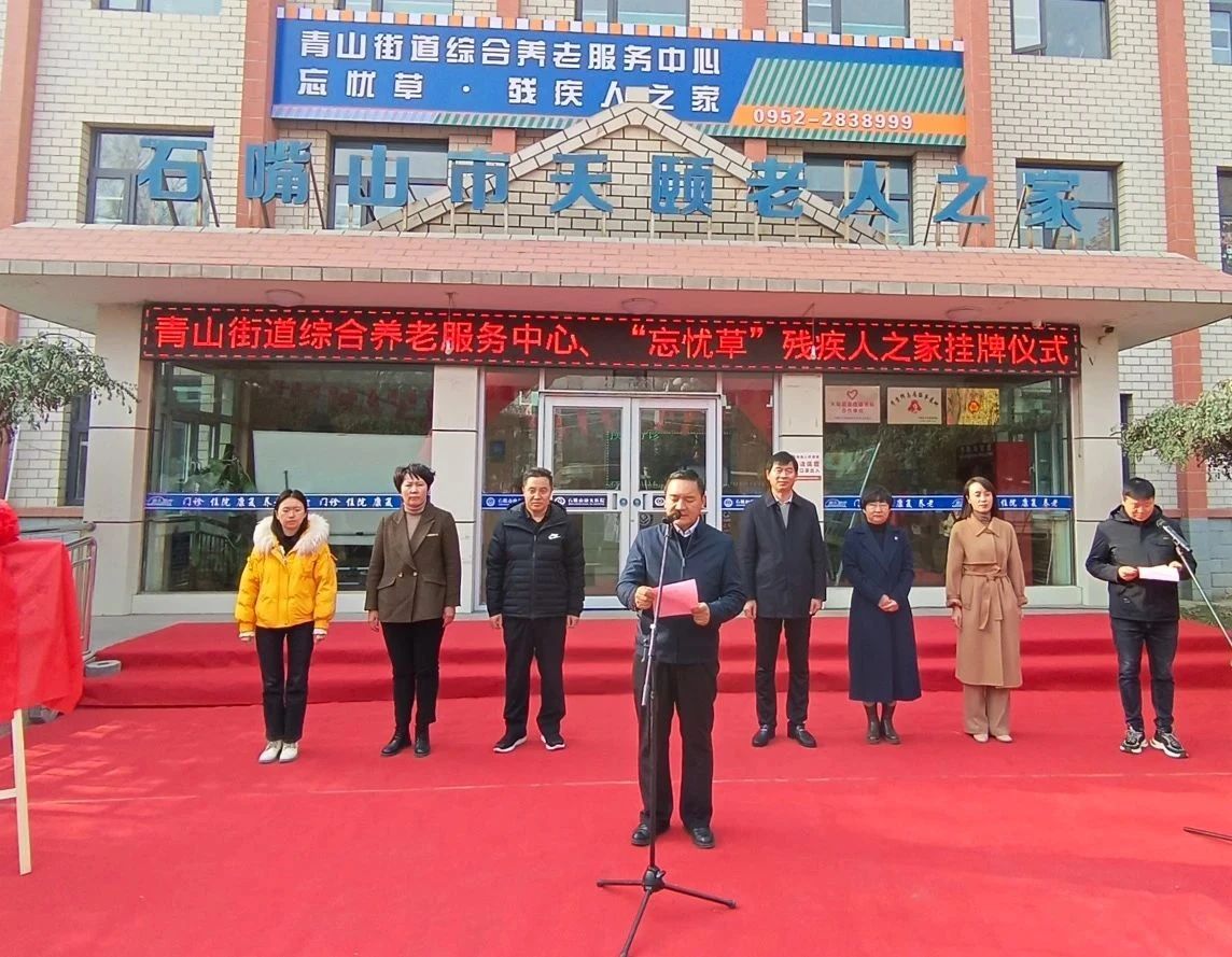 11月21日,寧夏石嘴山市大武口區(qū)青山街道綜合養(yǎng)老服務(wù)中心、“忘憂草”殘疾人之家舉行掛牌儀式,大武口區(qū)人民政府副區(qū)長萬眾出席并致辭,石嘴山市民政局、市殘聯(lián)、大武口區(qū)民政局、殘聯(lián)等單位領(lǐng)導(dǎo)出席儀式。